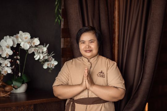 Элементы пассивной йоги, также плавные скользящие движения с аромамаслом.